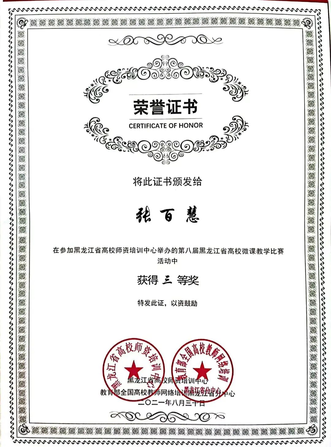 近日,在黑龙江省高校师资培训中心和教育部全国高校教师网络培训黑龙江省分中心举办的第八届黑龙江省高校青年教师多媒体课件制作大赛和高校微课教学比赛中,必赢线路检测中心教师韩福丽老师荣获多媒体课件制作大赛一等奖、教育学院张百慧老师荣获微课比赛三等奖。