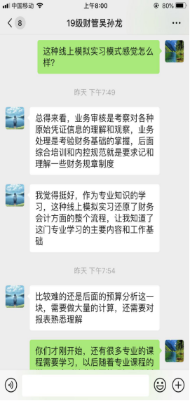 2018级学生王方玲说:通过本次实训,我们理论联系实际,不但熟悉了财务管理中所涉及的知识和问题,还让我们掌握了如何运用现代计算机辅助工具对遇到的问题进行分析计算,为实际工作打下良好基础。在取得实效的同时,我也在实训过程中发现了自身的一些不足。做财务管理工作,如果仅仅是学书本上的知识是远远不够的,工作的经验是及其重要的。实际工作过程中的各种问题不是书本就可以解答的,它需要灵活的应用能力,把所学知识应用到实践当中去。可以说没有实践的学习是非常狭隘的,也是不利于财务管理工作的。