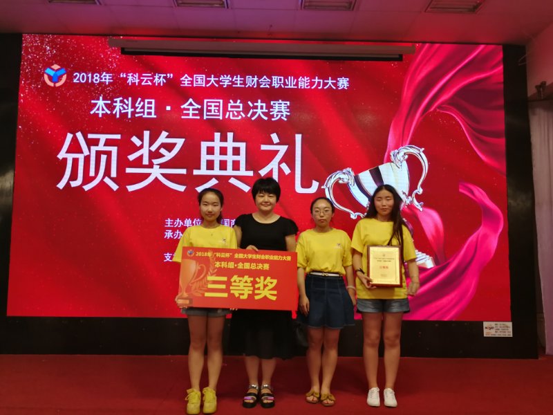 2018年7月14日,财务管理专业教师佟筱枫带领2016级财务管理专业的汤雪、黄薇等四名同学参加了在厦门集美大学财经学院举办的“科云杯”大学生财会职业能力大赛,本次大赛由来自全国38所高校的代表队参加。
