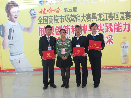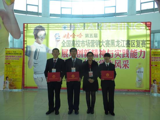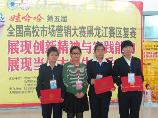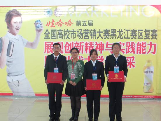 由中国市场学会、教育部考试中心和中国中小企业国际合作协会联合举办的2012年第五届全国高校市场营销大赛黑龙江区域复赛于2012年10月27日在哈尔滨商业大学举行。必赢线路检测中心所派出的四组团队,即众志团队、彩虹之巅、厚积薄发以及Up Union,在黑龙江复赛中获得了二等奖,指导教师赵艳获得了“优秀指导教师”单项奖。