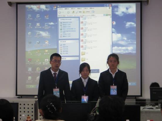 从左起:李明(监委)、赵晓玲(评委)、赵艳(指导教师)