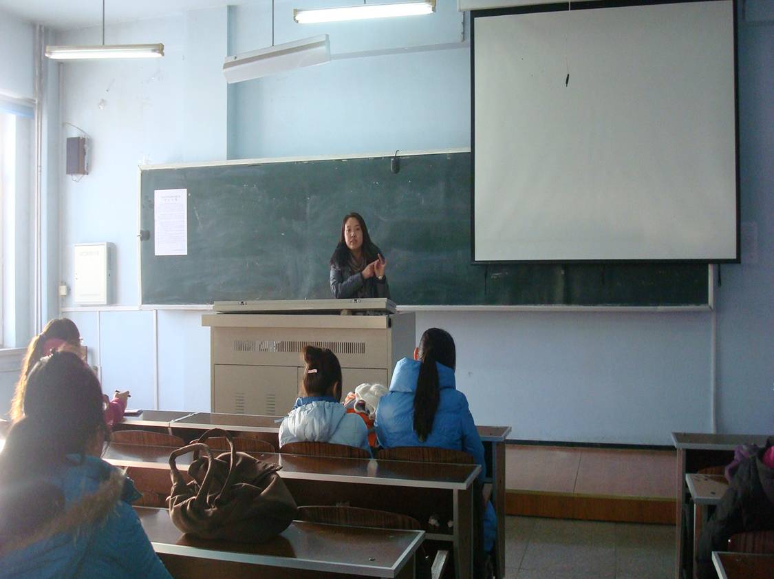 绥化市委讲师团副教授赵恩华在财务分析课上,为学生进行“后金融危机时代经济发展趋势 ”讲座。