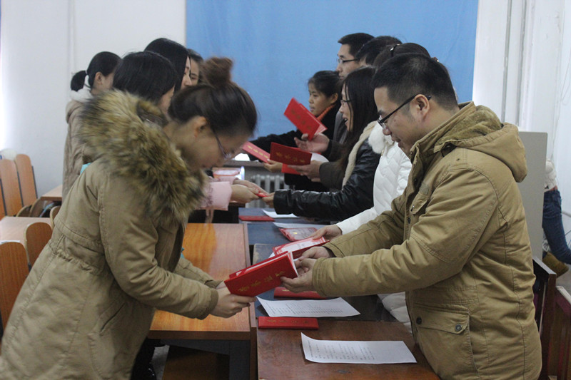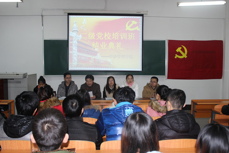 在庄严的国歌中,结业典礼拉开序幕。二级党校副校长夏艳霞对二级党校首期培训班工作作了简要回顾,把“党的理论知识学习”和“实践活动开展”两个方面的工作具体展开报告,听党的基础知识讲座、开学习心得研讨会、看爱国教育影片、开展“极限生存创业体验”和“最低生活消费挑战周”活动、看望孤寡老人等每项内容均取得了良好的收效及教育意义。管淑波老师宣读了优秀学员及结业学员名单,盛斯宇、蔺彩婷、于志豪、郭玉昊四名学员被评为优秀学员;石建发老师宣读了“最低生活消费挑战周”活动获奖名单,吕佳鑫代表的“小麻花”团队荣获一等奖,高爽代表的“爽爽爽”团队荣获二等奖。张光远老师宣读了“极限生存创业体验活动”获奖名单,奖项涉及“创业之星”、“最具潜力销售”、“创业先锋”等荣誉称号。2012级财务管理2班高爽同学在发言中代表本期二级党校所有学员对院系党总支的培养与教育表示感谢,她说,二级党校是一个加油站,使每位学员都倍受鼓舞,使学生明确了政治方向与目标,坚定了为人民服务的信念。