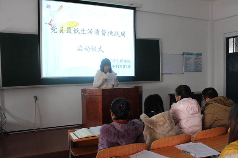 “一粥一饭,当思来处不易;半丝半缕,恒念物力维艰。”为帮助大学生培养良好的消费习惯,树立正确的消费观念,11月21日中午,必赢线路检测中心开展了学生党员“最低生活消费挑战周”活动。此次活动启动仪式在汇文楼502举行,我院党总支副书记夏艳霞、学生党支部书记姚娇娜、团总支副书记管淑波、辅导员石建发出席了启动仪式。