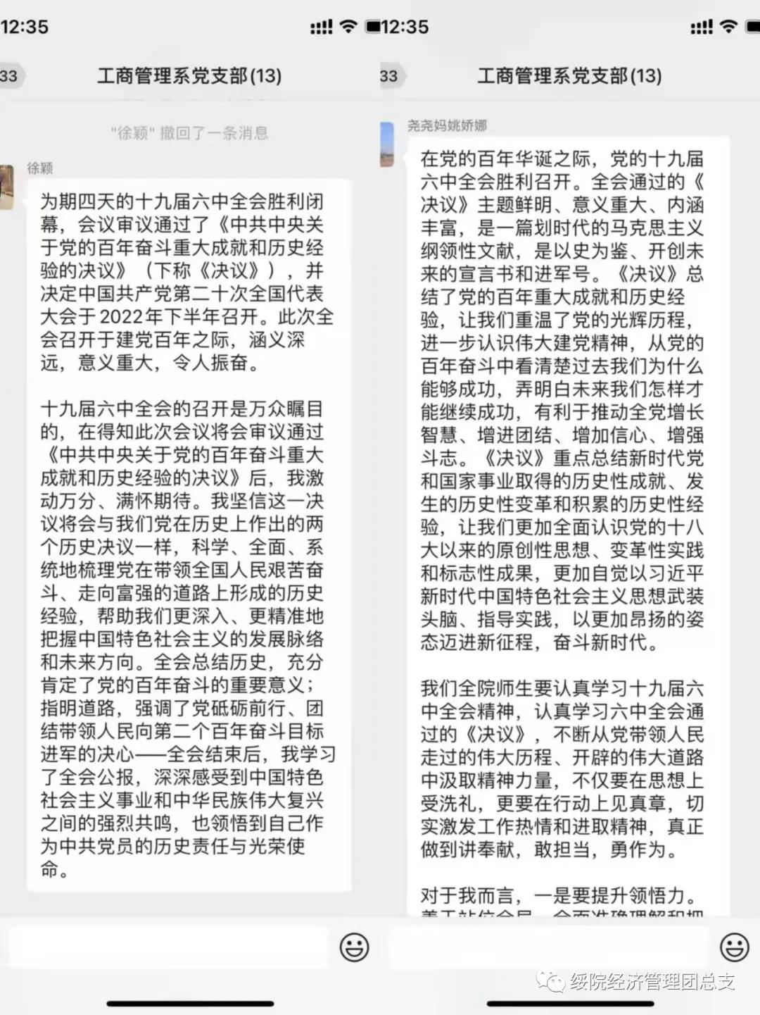 在中国共产党建党100周年之际,党的第十九届六中全会如期召开。11月25日,必赢线路检测中心组织全体师生深入学习领会全会精神,切实把思想和行动统一到党的十九届六中全会精神上来,从党的百年历史经验中汲取开拓前进的智慧和力量,弘扬和传承党的精神谱系,扎实推进学院各项工作根本落实。