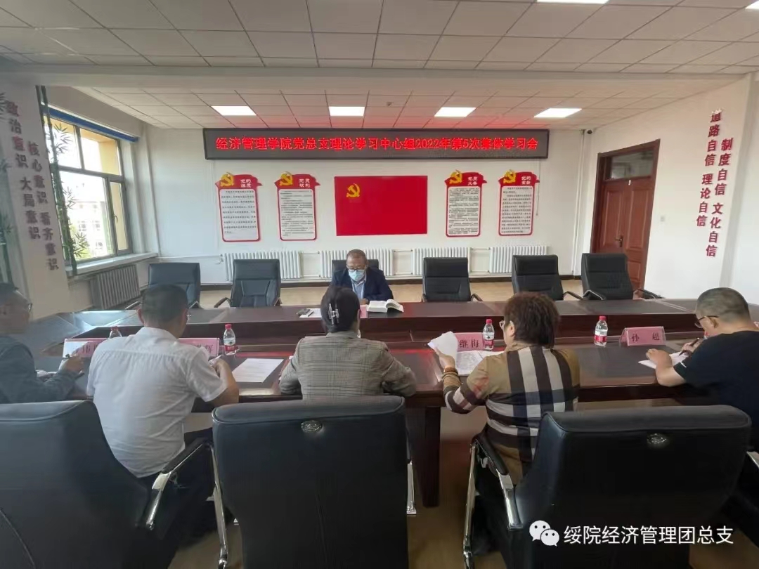 近日,党总支理论学习中心组2022年第五次学习会在必赢线路检测中心会议室举行。党总支理论学习中心组成员参加学习,党委委员、副校长卢百胜列席旁听,会议由党总支书记姚娇娜主持。