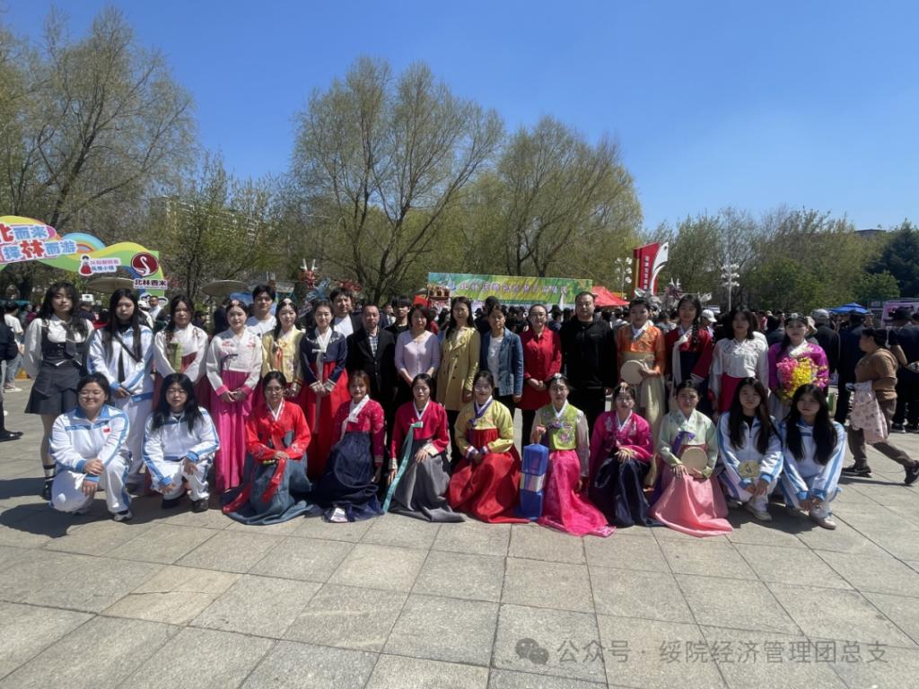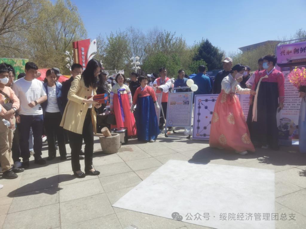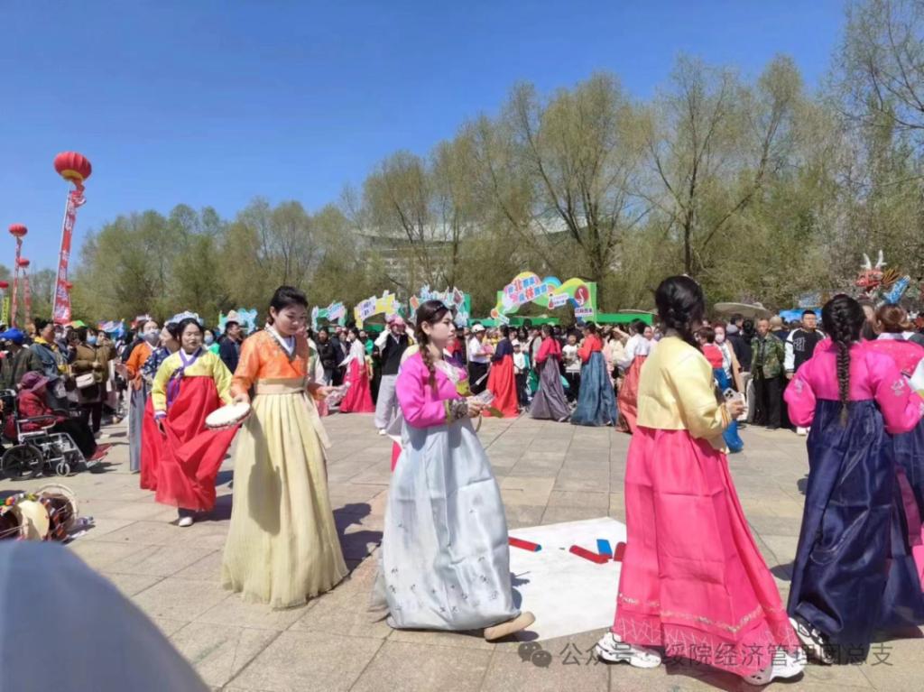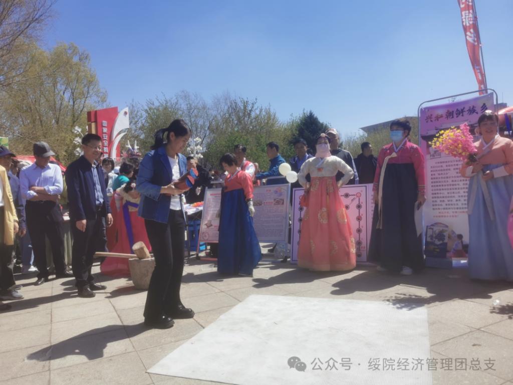 开展志愿服务活动。选派20名学生党员组建志愿者服务队,身着朝鲜族服饰,配合绥化市北林区兴和朝鲜族乡党委、政府,代表北林区参加花车巡游与行进间表演,宣传兴和朝鲜族乡特色文化。