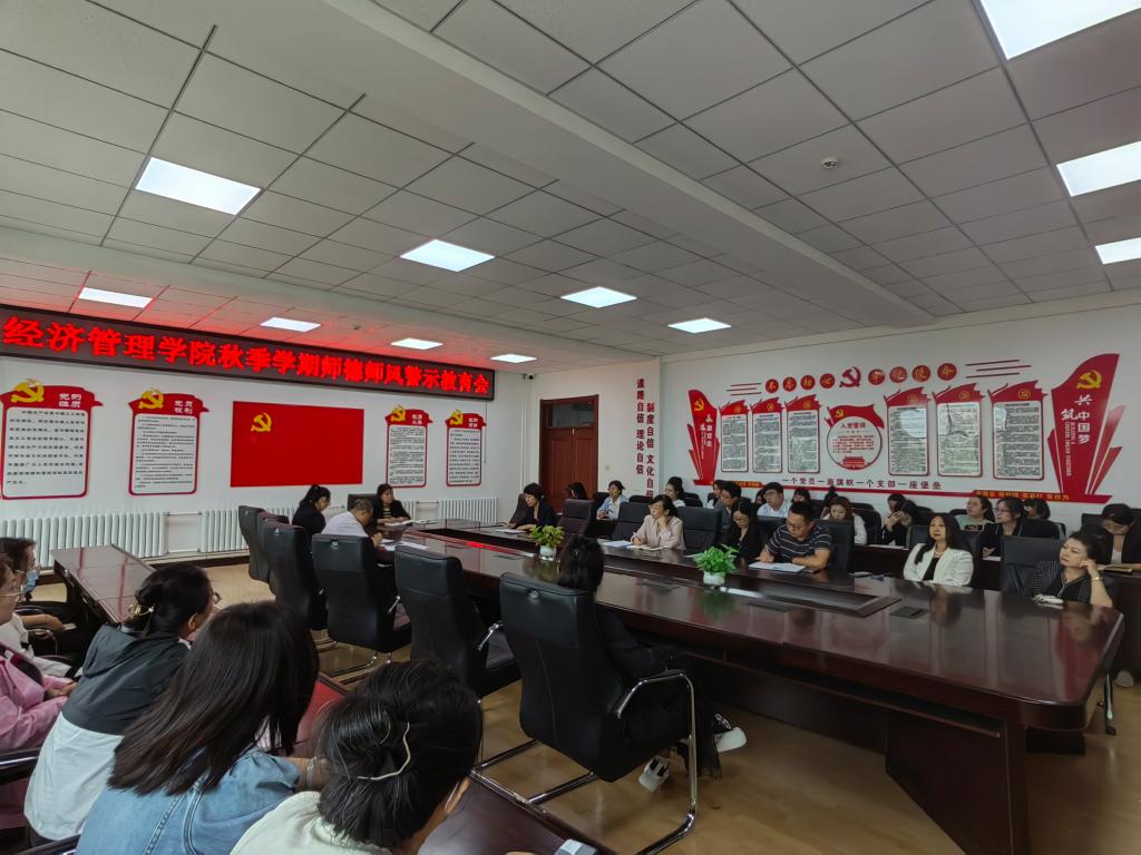 姚娇娜带领全体教职工学习了习总书记关于师德师风建设及建设教育强国的重要论述、《新时代高校教师职业行为十项准则》等文件,严肃强调了教师修师德、塑师风的重要性,希望全校教师对身边存在的违反师德师风行为引以为戒,在教育教学中恪守师德规范,不踩红线,不碰底线,提升教师师德水平,自觉维护教师队伍的良好形象。