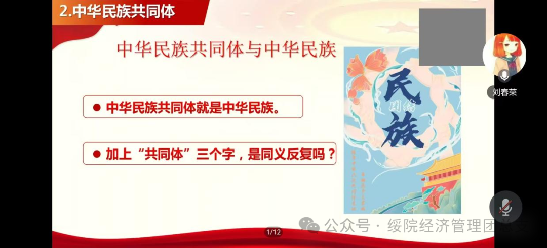 11月23日,我院邀请马克思主义学院刘春荣教授,以“铸牢中华民族共同体意识”为题,为我院师生带来了一场立意深远、主题鲜明的专题讲座。学院全体教师和学生干部代表参加此次讲座,本次讲座由党总支副书记丁晓燕主持。