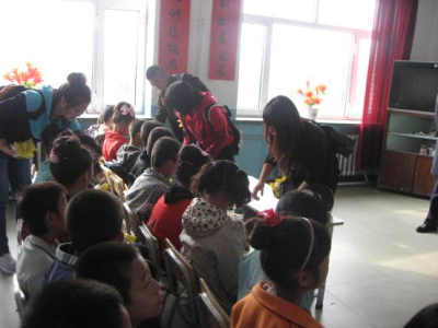 为了让农村留守儿童度过一个愉快、温馨、幸福的中秋佳节,我院开展了“月饼飘芳香,中秋送温暖”活动,当志愿者走进红旗中心校三年级的教室时,郭金峰正趴在桌子上写作业,诺大的教室只有他一个人。班级其他条件好的孩子都转到其他学校上学,他付不起城里的午饭钱,留了下来。他的父母外出打工,他和爷爷奶奶生活在一起。这里的老师也依然坚持为班级仅有的一个学生上课,郭金锋看到志愿者进班级时,一时有些吃惊,当志愿者把月饼送给他的时候,他怯生生地说声谢谢,转身便跑开了。他说要把这几块月饼拿回家给奶奶吃,奶奶每天早早起来给我做饭,很辛苦。这一句话让大学生志愿者都感动不已。志愿者魏长彬看见一个孩子的学习用具都破损了,就将一支跟随自己多年的钢笔,送给了这位小朋友。看着孩子们都在吃月饼,露出了开心的笑脸,志愿者们也开心地笑了起来。