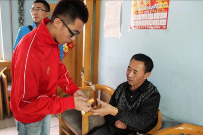 在我们的身边,还存在着这样一群 “老小孩儿”,他们也过着寂寞的中秋节,他们就是空巢老人。志愿者也为他们送去了月饼,跟老人谈心聊天,询问老人的健康状况,了解了老人的需求,给老人送去来自大学生志愿者的关爱,让老人感受到来自社会大家庭的情意。“孩子们都出去打工了,我以为过这个中秋节特别孤单,没想到有这么多大学生志愿者,来了又是跳舞、又是唱歌,我非常高兴,没有比这个中秋节更高兴的了。”一位80岁高龄的老人高兴地说。