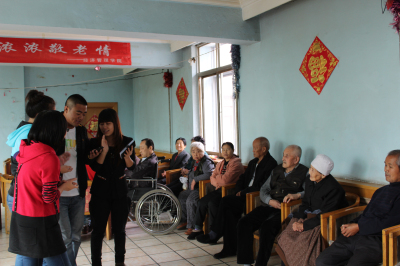 大学生志愿者为福泰福利院的老人们演唱歌曲