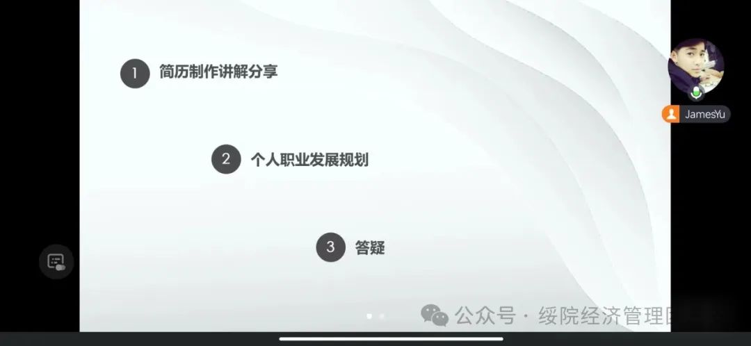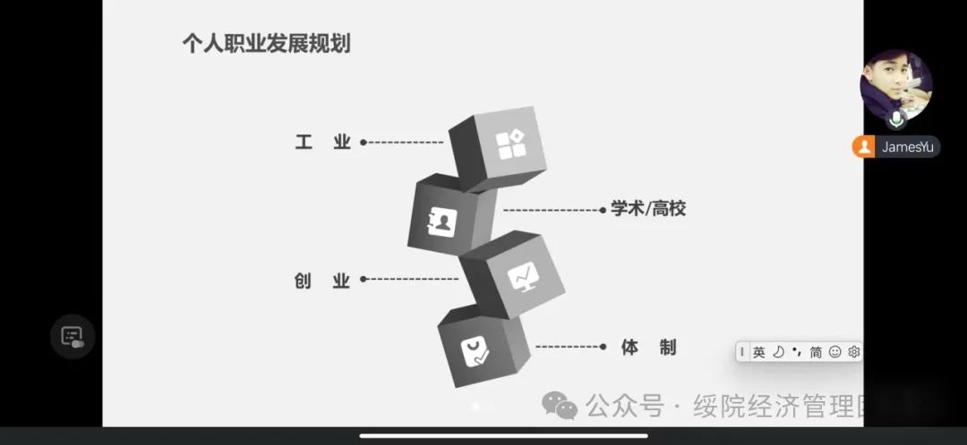 讲坛上,于承旭讲述了自己从一名普通大学生到行业翘楚的奋斗历程,通过生动真实的案例,让同学们感受到了职场拼搏的艰辛与收获。本次讲坛分为简历制作讲解分享、个人职业发展规划、答疑三个部分。他详细介绍了职场中的挑战与机遇,分析了行业发展趋势,并传授了实用的技能提升方法。在个人职业发展规划部分他从工业、学术(高校)、创业、体制四个方面引导同学们用更正确的方式来制定自己的人生规划。最后的答疑环节里同学们都十分热情地向于承旭提出了自己的疑惑,于承旭也都一一为大家解答,给出了建议。本次活动为大家提供了一个难得的交流平台,让同学们能够在交流中获得成长和启发。