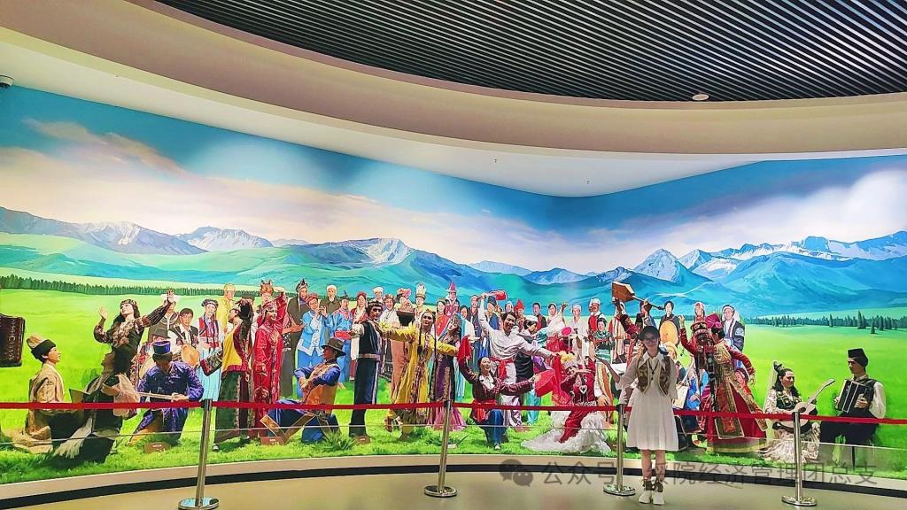 团队成员安致漩,吉宏雨来到了位于新疆维吾尔自治区乌鲁木齐市的新疆维吾尔自治区博物馆。新疆维吾尔自治区博物馆作为展示新疆地区历史、文化、民俗的重要窗口,其丰富的藏品和详尽的展览设计令人叹为观止。从远古时期的石器、陶器,到汉唐时期的丝绸、壁画,再到近现代的民族服饰、生活器具,每一件展品都承载着新疆地区悠久的历史和深厚的文化底蕴。这些展品不仅展示了新疆在不同历史时期的发展变迁,也反映了新疆与中原地区及中亚、西亚等地区的文化交流与融合。在参观过程中,团队成员被那些精美的文物深深吸引。无论是神秘的楼兰古城遗物,还是精美的龟兹石窟壁画,都让团队成员感受到了古代新疆人民的智慧和创造力。同时,团队成员也被新疆地区多民族文化的和谐共生所感动。在这里,维吾尔族、哈萨克族、回族等多个民族的文化相互交融、相互影响,共同构成了新疆丰富多彩的文化景观。