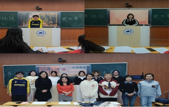 选手们在舞台上自信满满,讲解生动有趣,让人沉浸其中。选手们凭借扎实的专业知识和出色的表达能力,带领观众畅游祖国的名山大川,领略各地的风土人情。在比赛过程中的讲解环节,学生们凭借扎实的专业知识,对各个景点的历史背景、文化内涵、特色景观等进行了深入细致的讲解。在评委提问环节,学生们沉着冷静,思维敏捷,迅速准确地回答问题,展现出了丰富的知识储备和良好的应变能力。最终李丹荣获一等奖,洪阳、欧欣怡荣获二等奖、许庆伟、王露露、付雅婷、林珑、王亚茹、尹文宏、庞谦、刘胜楠荣获优秀奖。
