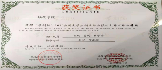 2020年10月由省教育厅高教处指导,黑龙江省普通高等学校创新创业教育指导委员会主办,黑龙江科技大学承办的“2020年黑龙江省高校‘学创杯’大学生创新创业综合模拟大赛”落下帷幕。本次竞赛共吸引60余所高校近200支队伍通过网络参赛。绥化学院通过校赛,由经管市场营销专业9名学生参加省赛,市场营销专业赵艳老师指导,在省赛中荣获省二等奖2项;省三等奖1项。近五年,绥化学院经济管理在“学创杯”大赛中连续取得优异成绩,这得益于学校领导对双创工作的重视,得益于各绥化学院领导对双创工作的热情和支持,是学校不断强化创新创业教育的成果。学校将以大赛为依托,积极为学生搭建学习、交流平台,实现双创资源共享,引导学生树立正确的创业就业观,全面提升学生综合素质和能力。